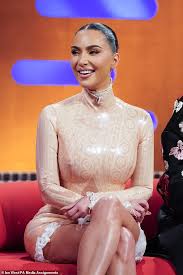 Kim Kardashian made a captivating public appearance on The Graham Norton Show on Thursday, donning a form-fitting latex mini dress as part of the ongoing promotion for her forthcoming Disney+ legal drama, All’s Fair.